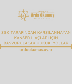 Kanser İlaçlarım SGK Tarafından Karşılanmıyor Ne Yapmam Gerek veya SGK kanser tedavisini karşılıyor mu soruları, sıkça sorulan sorular arasında yer almaktadır. Kanser hastalarının tedavi sürecinde karşılaştığı en büyük zorluklardan biri de yüksek maliyetli kanser ilaçlarının SGK tarafından karşılanmamasıdır. Bu durum, hastaların ve ailelerinin maddi ve manevi açıdan büyük sıkıntılar yaşamasına neden olmakta ve ciddi hak kayıplarına yol açabilmektedir. Arda Okumuş Hukuk Bürosu olarak siz değerli müvekkillerimize SGK’nın Sağlık Uygulamaları Tebliği gereğince geri ödeme kapsamı dışında kalan kanser ilaçlarının bedellerinin karşılanması için hukuki destek sağlamaktayız. Bu süreçte, gerekli başvuruların yapılmasından, dava süreçlerinin takibine kadar her aşamada yanınızdayız. Amacımız, hastaların tedavi süreçlerinde hak ettikleri desteği alarak sağlıklarına kavuşmalarını sağlamaktır. Daha fazla bilgi ve danışmanlık için Bozüyük’ te bulunan ofisimizde bizimle iletişime geçebilirsiniz.